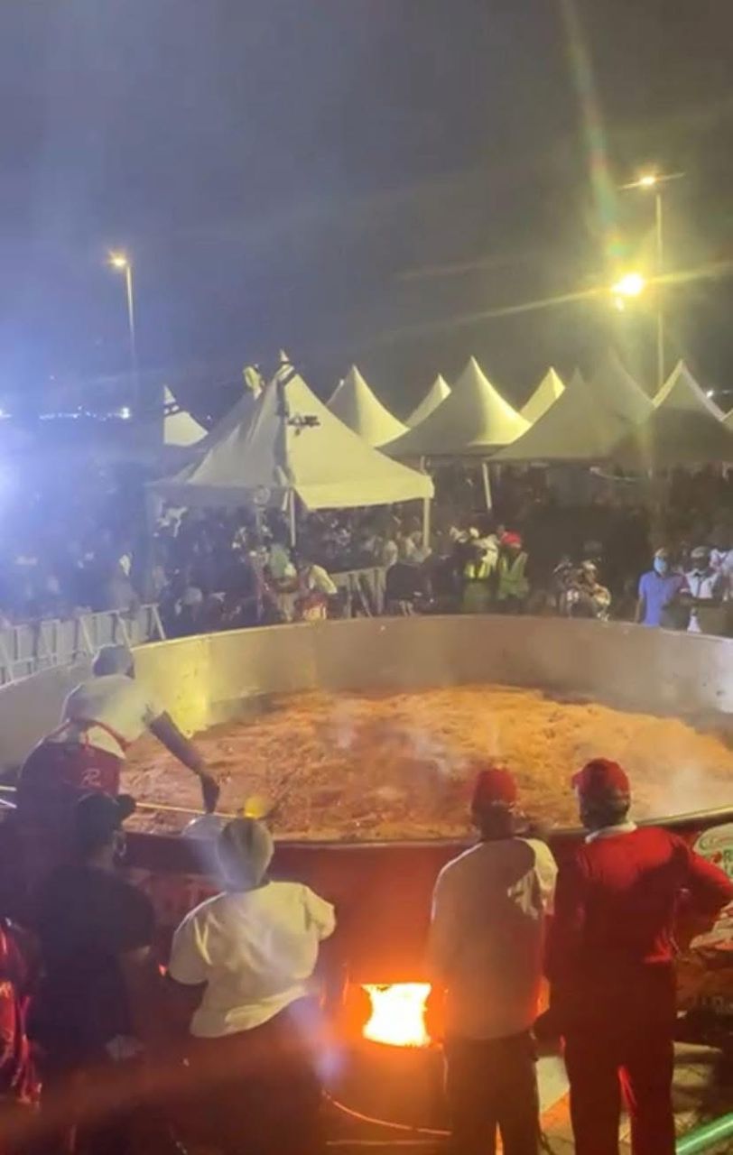 The post read: “New record: Largest serving of Nigerian-style jollof rice – 8,780 kg (19,356 lb 9 oz) achieved by Hilda Baci and Gino in Victoria Island, Lagos, Nigeria 🇳🇬.”